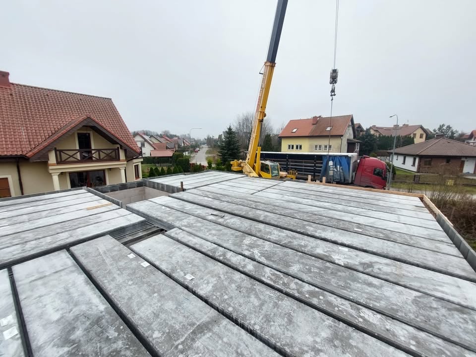 Dostarczamy stropy panelowe bezpośrednio na inwestycję. Pomagamy przygotować plac budowy pod rozładunek i ułożenie płyt — tak, żeby montaż poszedł szybko i bez niepotrzebnych przestojów.